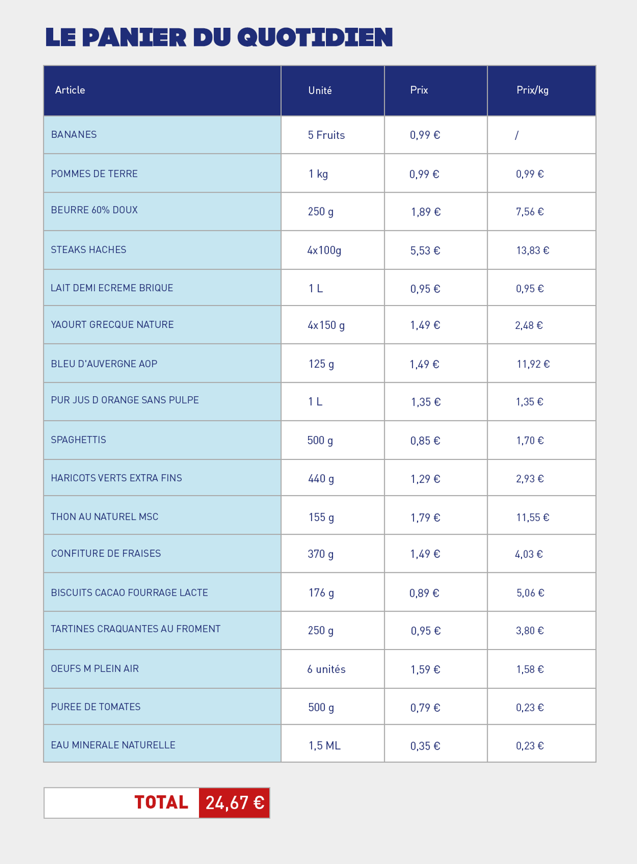 Sur la liste de courses, vous trouverez les produits quotidiens les plus importants :